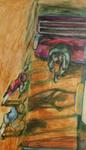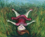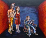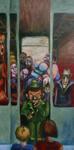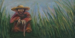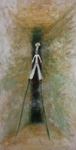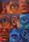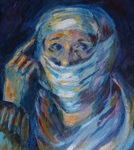 2007Een omzwachteld hoofd, de ogen vrij. Iemand die niet wil zien wat er speelt. (Dit werk is oorspronkelijk ovaal, het betreft hier een uitsnede).